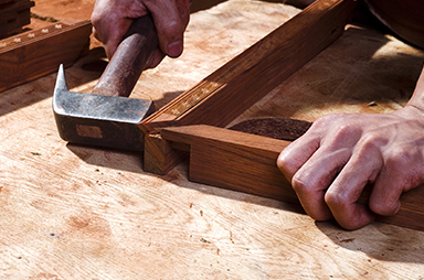 开料,根据木工图纸把木材加工成不同形状的部件,要求与图纸完全一致,包括尺寸,曲线弧度等。开榫凿眼,开榫要求榫头饱满,榫眼要周正,不皮楞、不窜角。